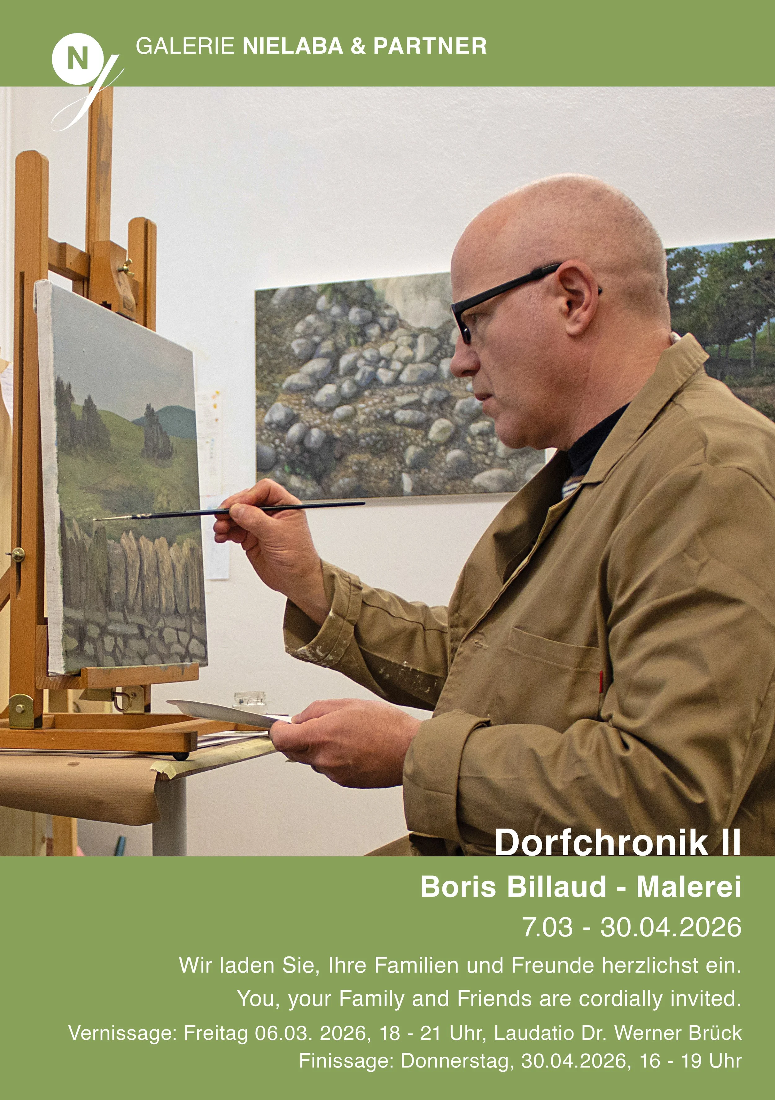 Die Gegenstände sind uns ja gegeben. Sie stehen uns entgegen, gegenüber. Vielleicht nicht gerade im Prinzip, aber doch so oder so. Wen kümmert es, ob sie unabhängig von uns existieren? In einer Gegenwart, in der alles virtuell wird? - Während die Wirklichkeit Fiktion wird, macht Boris Billaud Fiktion zur Wirklichkeit. Seine Bilder erzeugen Räume und Zeiten, in Veränderungen, als bildnerische Wahrheiten.
